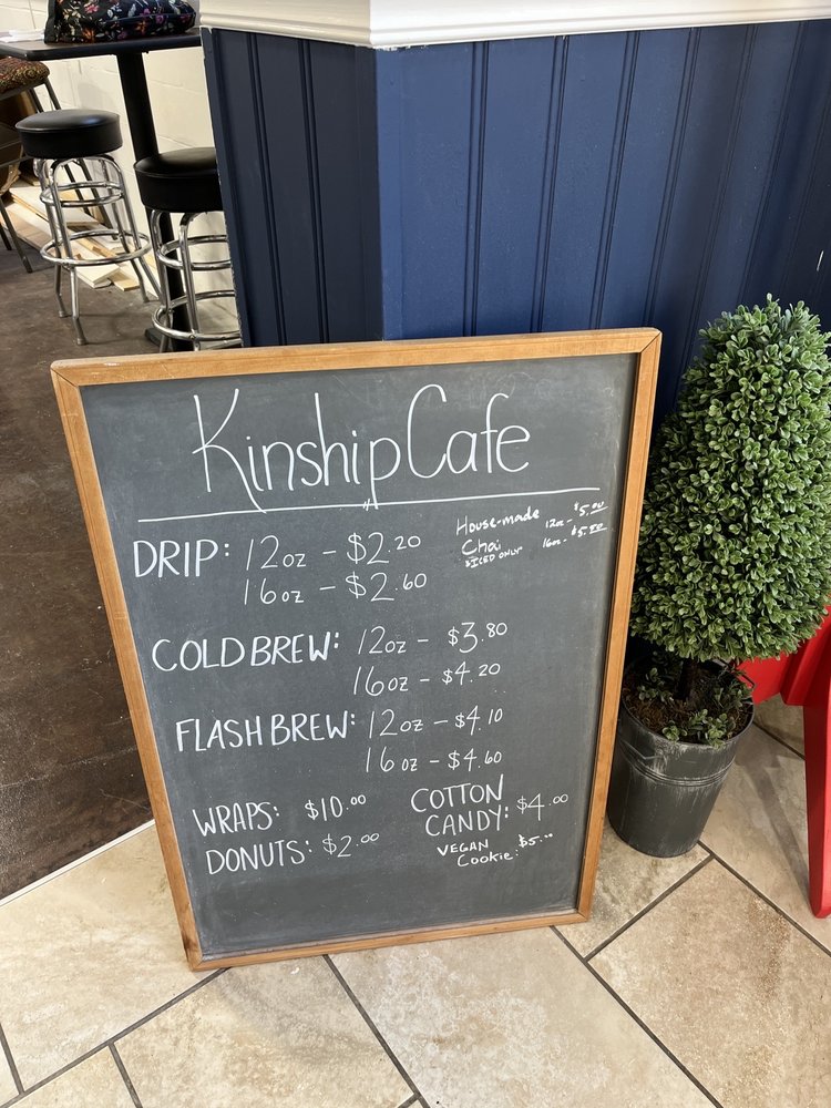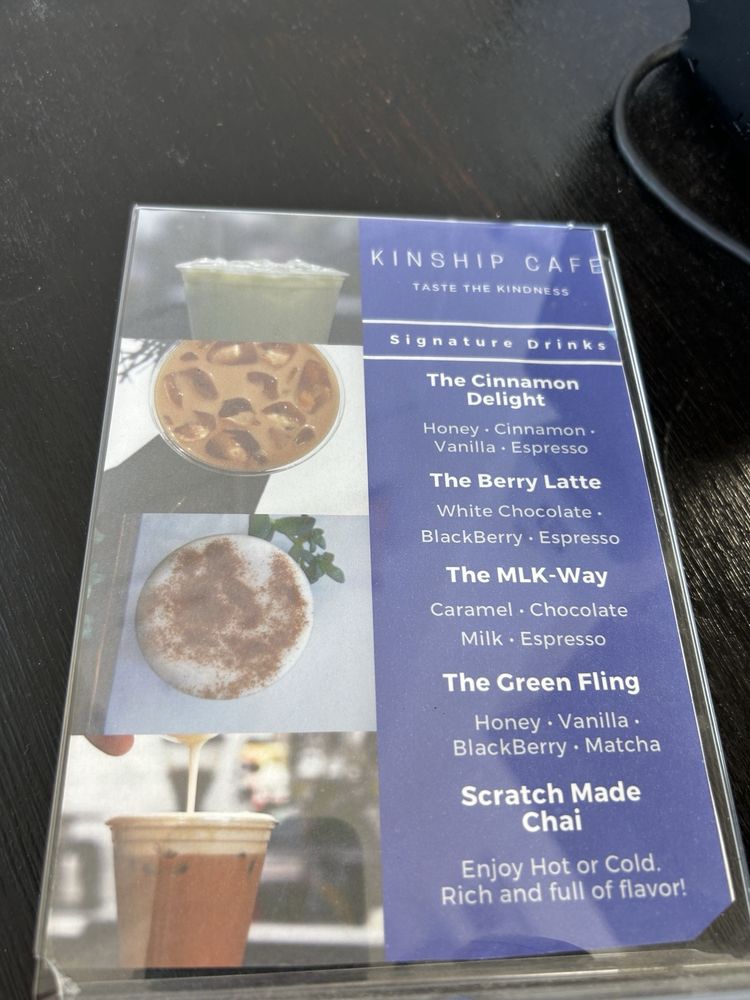 "Kinship Cafe, located at 719 N 6th St Kansas City, KS, offers a diverse menu catering to various dietary preferences and needs. With options ranging from baked items like the indulgent Apple Fritter to savory Deli choices like the Grilled Cheese and The Grilled PB&J, there is something for everyone here. The Wraps section stands out with innovative creations such as The Breakfast Scrambler Wrap and The MVP Wrap. The cafe also caters to vegan and vegetarian customers with options like scratchmade pesto and vegan chorizo. The ambiance is welcoming and inclusive, with features like gender-neutral restrooms and outdoor seating. Kinship Cafe takes pride in its thoughtful menu offerings and strives to create a sense of community and connection through food. Overall, a visit to Kinship Cafe promises a delightful dining experience for all."